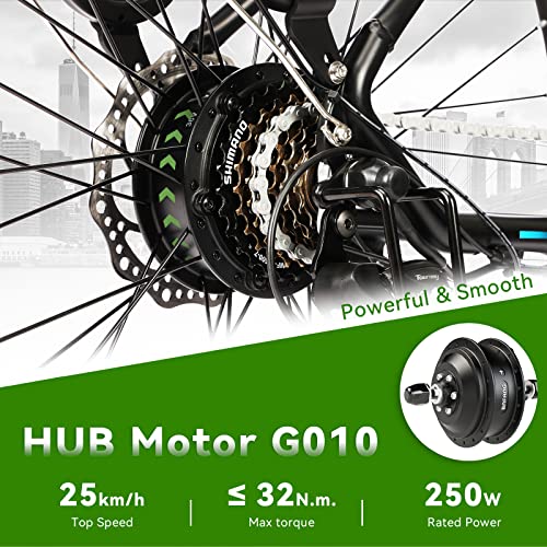 LEISTUNGSSTARKER MOTOR: Unsere E-Bikes mit 250W bürstenlosem Getriebemotor am Hinterrad sind leise und bietet Tretunterstützung bei einer Geschwindigkeit von bis zu 25 km/h. Die kraftvolle Leistung gibt Ihnen die Unterstützung, die Sie brauchen, um 20° Hügel mit Leichtigkeit zu erklimmen und sich leicht und schnell zu fühlen