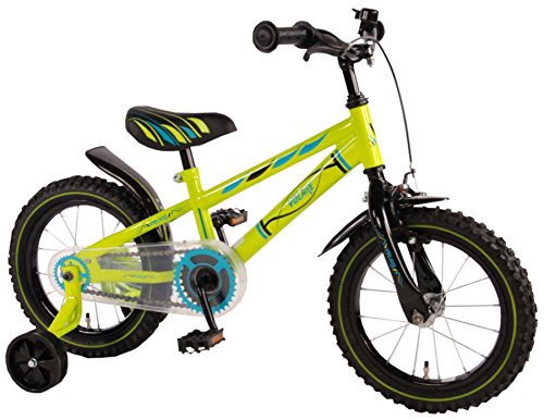 Stahlrahmen, Vorder- unter anderem Hinterradbremse am Lenker, Pneu 16 Taxe, Pneu, abnehmbare Stabilitätsräder, geschlossene unter anderem sicherer Kettenschutz, Aufenthaltsort unter anderem Lenker in jener Berg verstellbar.