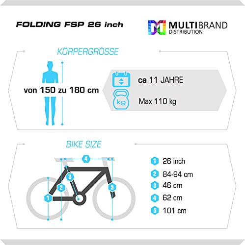 Geometrie: Laufradgröße: 26 Ertrag; Sitzhöhe ab Boden /Höhenverstellbare Sattelstütze/: 84 – 94 cm; Sitzrohrlänge: 46 cm; Entfernung vom Sattel zum Lenker: 62 cm. Entfernung ab Boden zum Lenker: 101 cm.